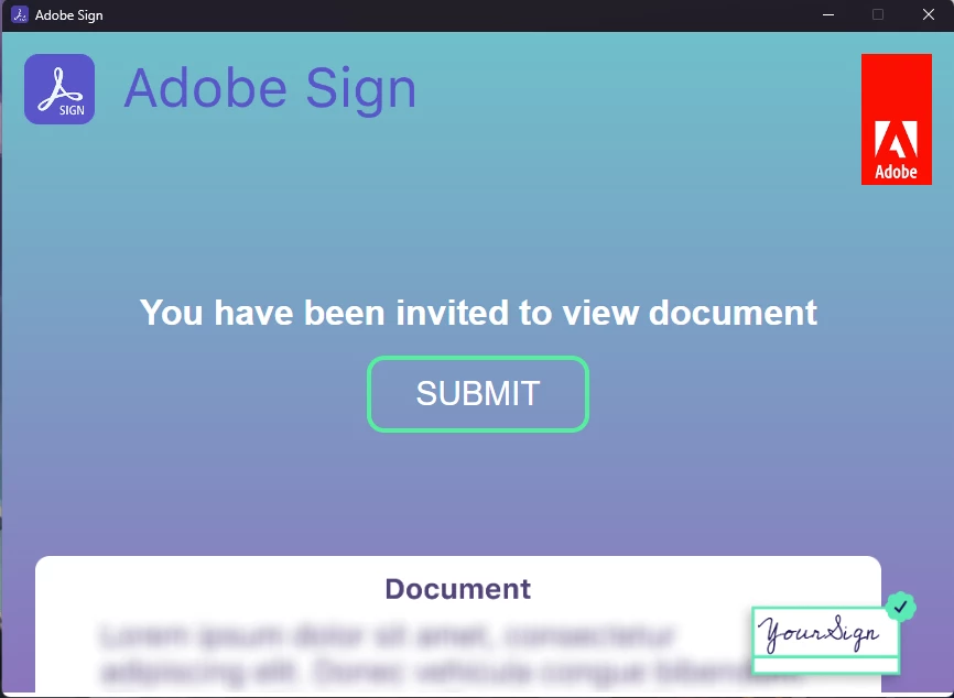 I was sent a pdf to sign. After clicking the link and downloading the full version of Adobe Sign, I am stuck on the launch screen of the app. I am on Windows 11 PC.