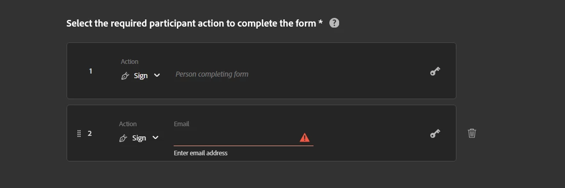 I need to create a web form (with the intent on using the web form link in a templated email) that has the ability to have either 1 signature or 2 signatures, depending on whether the signer is married or not. When I create a web form and add a second participant, it asks me to enter the email address for the second participant.