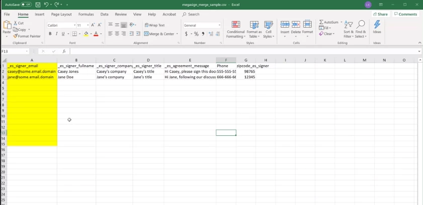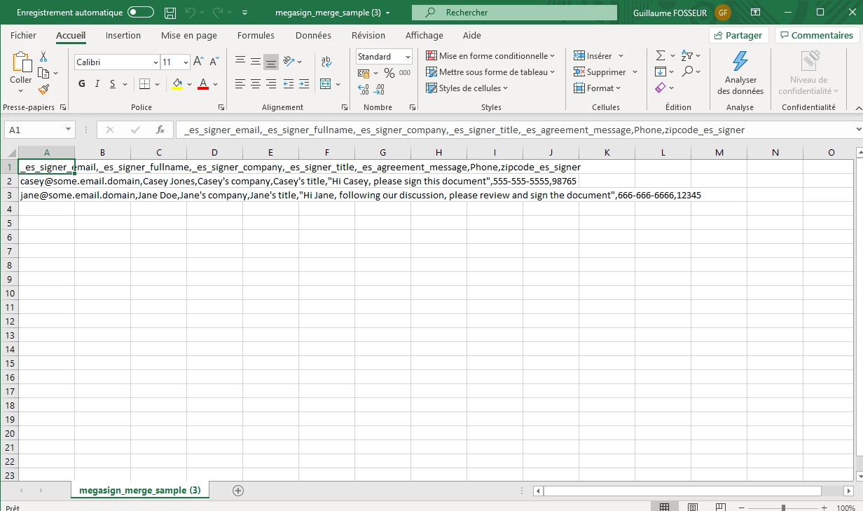 First of all, when I download my CSV sample file, here is the presentation I have :