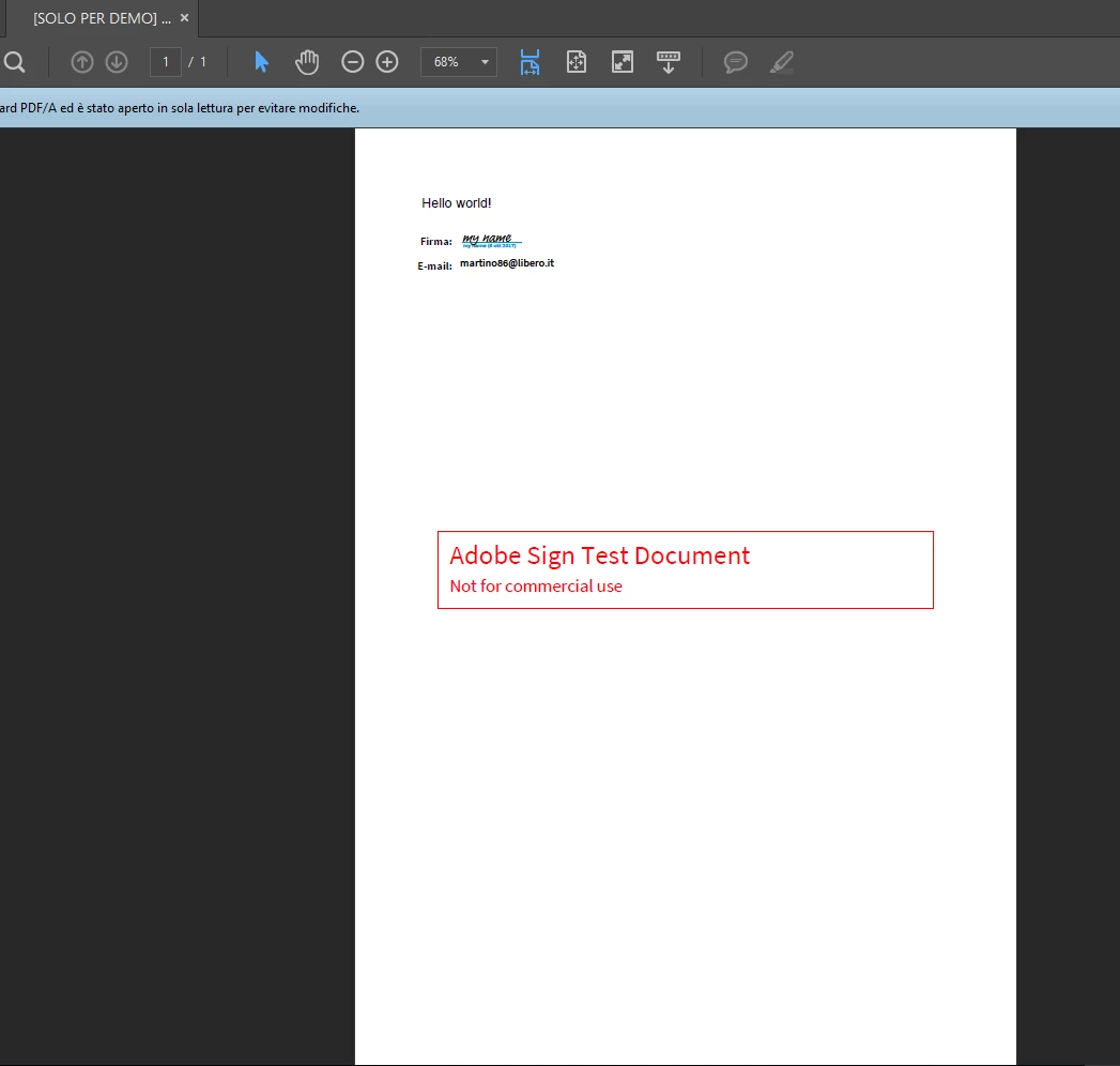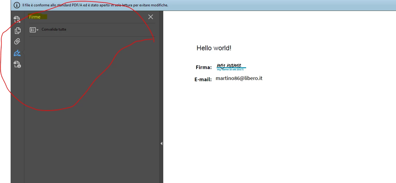 If I open the PDF in Acrobat it doesn't show anything in the signature panel