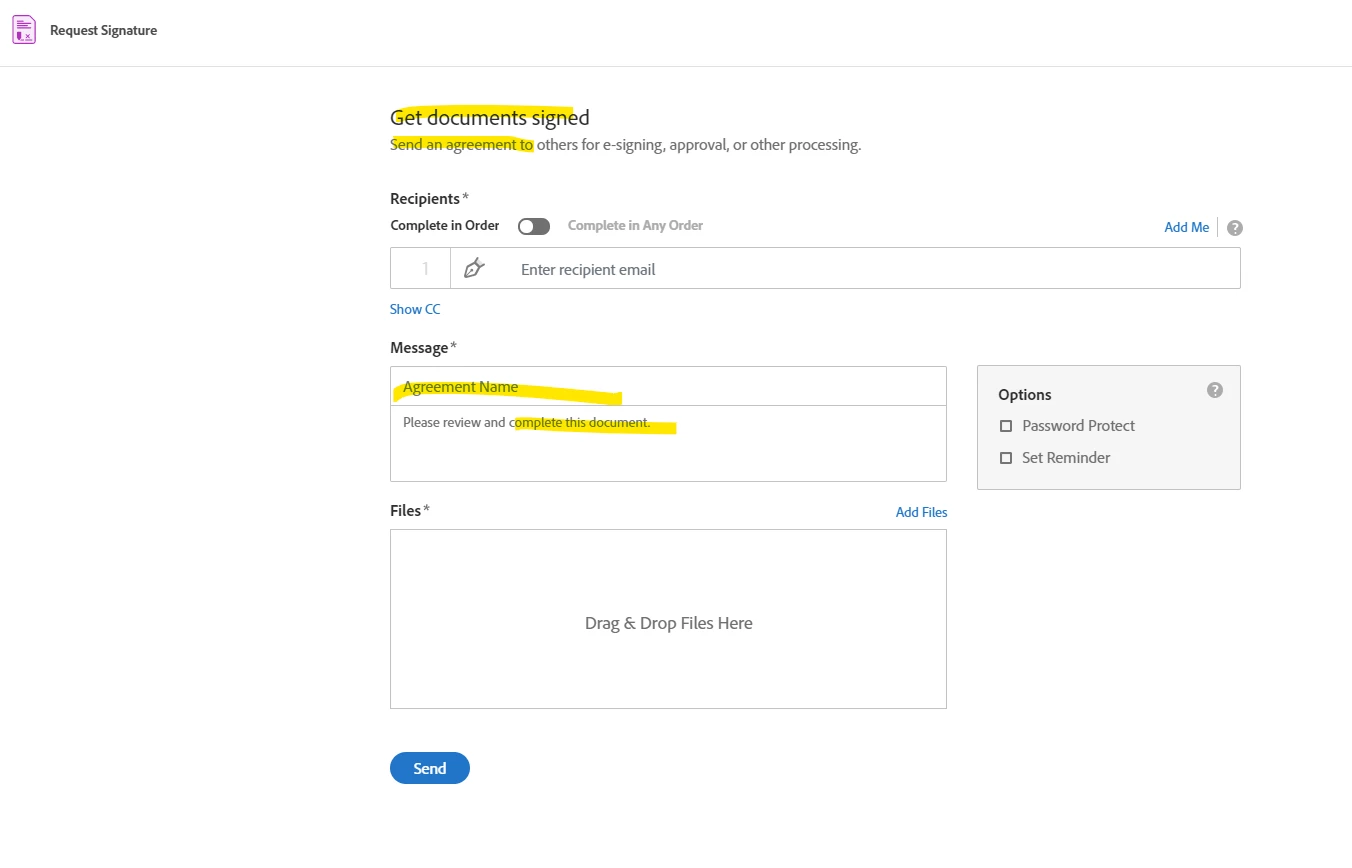 Perhaps some development time could be invested in cleaning up the user interface so that terms are more intuitive and consistant. I want to get documents signed; some are agreements, some are applications or forms, and some are just memos. But they are all "documents."