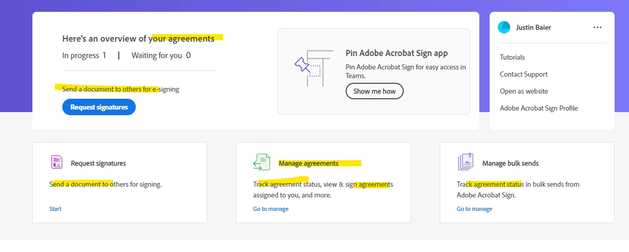 I am perplexed, however, with the application's apparent conflation or seemingly indiscriminate use of the words "document" and "agreement"; as if these words are synonymous (see my Teams add-in examples below). I believe one would assume, for this application, that all agreements are documents, but not all documents are agreements, but that is not how this application appears to work.