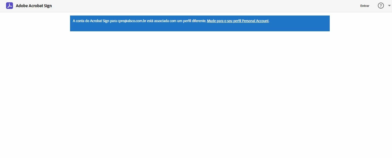 JÁ VERIFIQUEI A CONTA, JÁ ENTREI EM CONTATO COM O SUPORTE, MAS ATÉ AGORA NADA. NA MINHA CONTA ESTÁ TUDO OK, ESTOU VINCULADA A LINCENÇA,E NÃO CONSIGO ACESSAR O ADOBE ACROBAT SIGN, SEMPRE QUE TENTO ENTRAR NO ADOBE ACROBAT SIGN APARECE QUE "A conta do Acrobat Sign [Email address removed by Mod: If you need to send any info to the Product team, please send a direct/private message by clicking on the profile of the user and select send the message, please avoid sharing personal info on the public platform] associada com um perfil diferente. Mude para o seu perfil Personal Account.", MAS JÁ VERIFIQUEI, E NÃO ESTÁ ASSOCIADA A OUTRO PERFIL, POIS SÓ É UTILIZADO ESSE E-MAIL PARA ENTRAR NA CONTA, NÃO EXISTI OUTRO E-MAIL, E OS PERFIS JÁ FORAM VISTOS E REVISTOS PELOS ATENDENTES E SUPORTE DA REDE ADOBE. PEÇO QUE ALGUÉM POSSA AJUDAR, POIS ESTOU FALANDO DE UMA EMPRESA, E ESTAMOS PRECISANDO DO SERVIÇO DO ADOBE ACROBAT SIGN, POIS O UTILIZAMOS PARA MANDAR DOCUMENTOS ASSINADOS INTERNAMENTE, ISSO ESTÁ AFETADO O NOSSO TRABALHO.