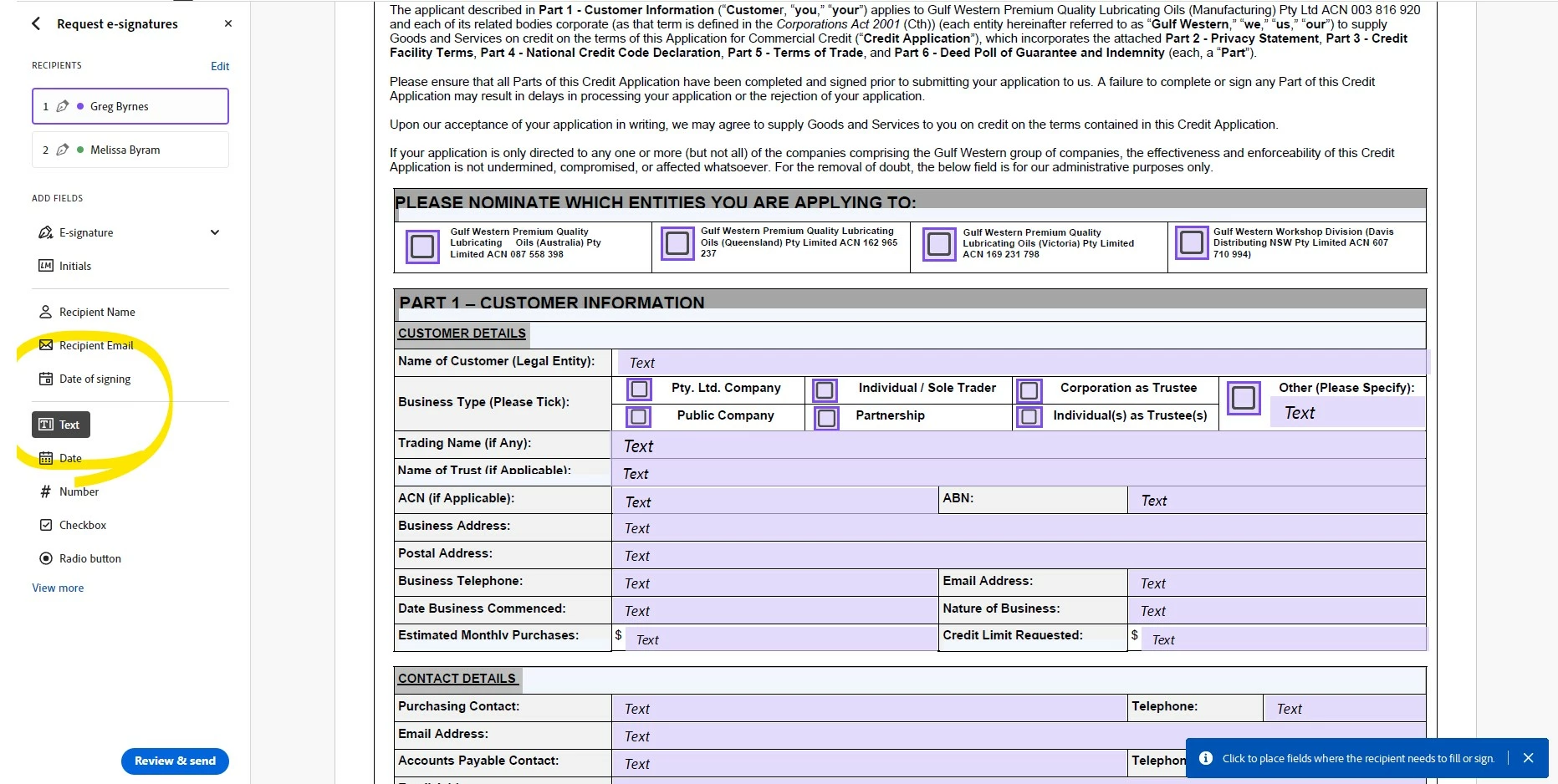 - In the settings window, scroll down to E-signing settings.