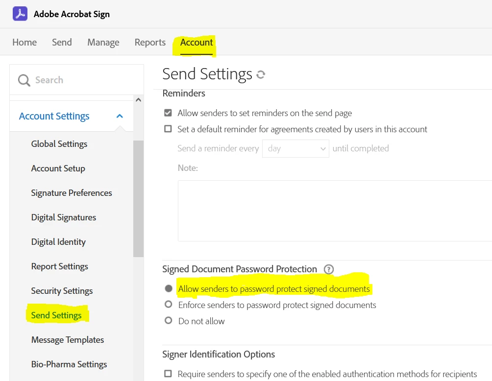 It might be possible that the Admin of the account has disabled the option in the Acrobat Sign account settings.