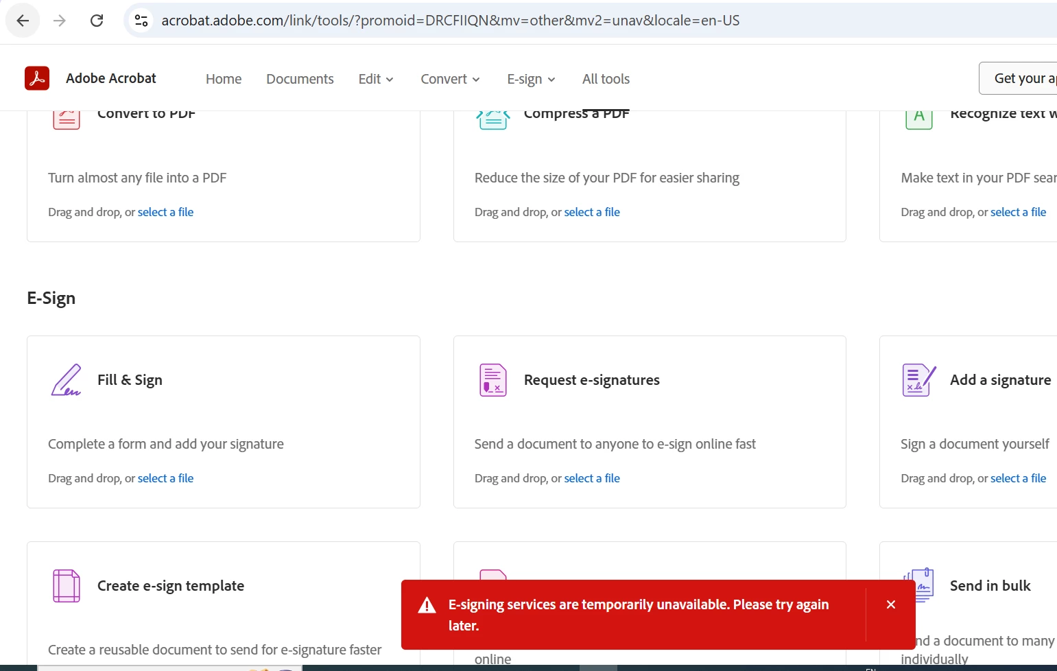 Hi, I am trying to get access to the 'request an e-signature' tool but it doesn't appear...... I have Adobe Pro.... Please help