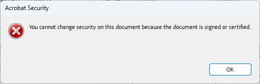Suddenly, the option to encrypt with password is greyed out. I received an error message when trying to encrypt with password. Doesn't matter if the document is filled out, or a new blank copy. It is says