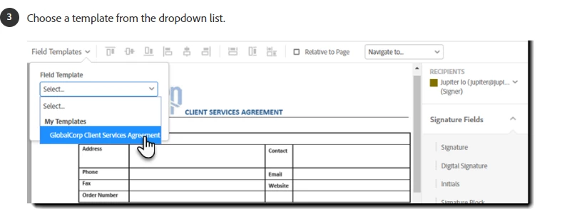 The adobe app has updated the Request e-signatures section and now I cannot find the option to use a template for form fields. The link below has a walkthrough on how to do it on the old version which shows the template option being in the top left corner (picture from link below as well). That's how I've done it so far for about 20 documents.