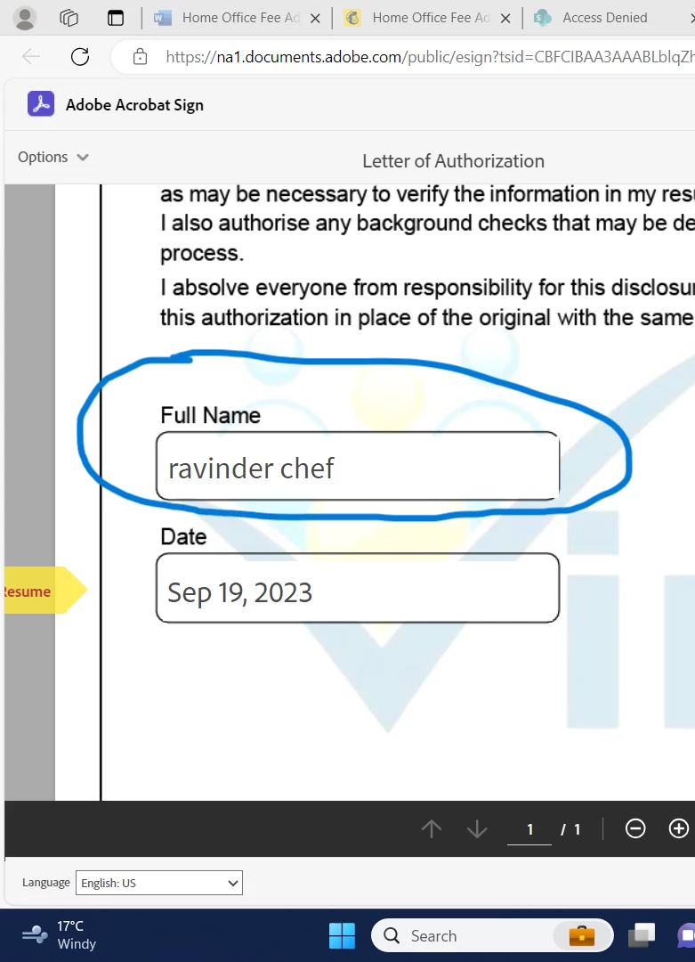 Full name on document Adobe Acrobat Sign
