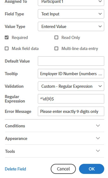 Im trying to add a form field for an TAX ID which is exactly 9 digits.  I am entering it as shows in the attachment but it is not working.  Any help would be greatly appreciated.
