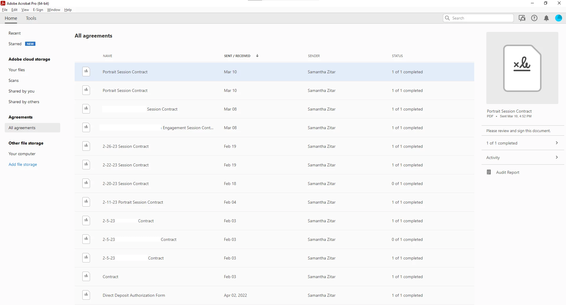 How do I download completed agreements from Acrobat Pro 2023?