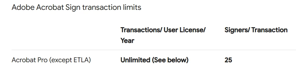 I have Adobe Acrobat Pro Account, it includes Adobe Acrobat Sign. How many documents can I send for signature per month or is it unlimited with my $20/month subscription?