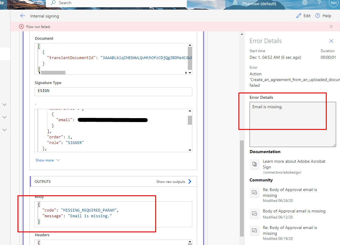 But Reviewers are optional, and if I leave those columns empty the flow stops, and shows me an error "Email is missing"