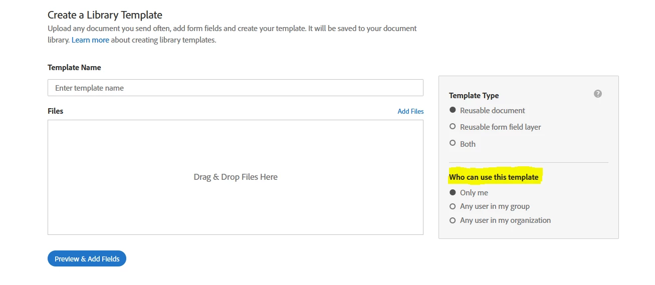 So, using this help document https://helpx.adobe.com/au/document-cloud/help/create-template.html I've created a template in Document Cloud.