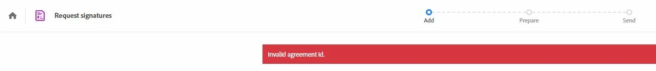 Hi, I'm getting an invalid agreement ID error when I press "Send for Signature." What could be the cause of this and how can I fix it?