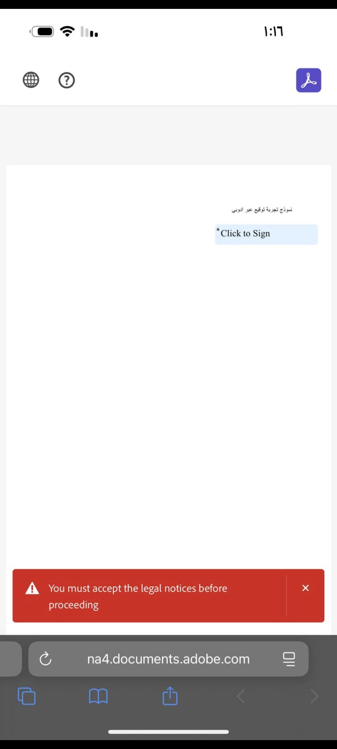 Issue with Adobe Sign on Mobile: "Agree" Button for Terms of Use is Missing