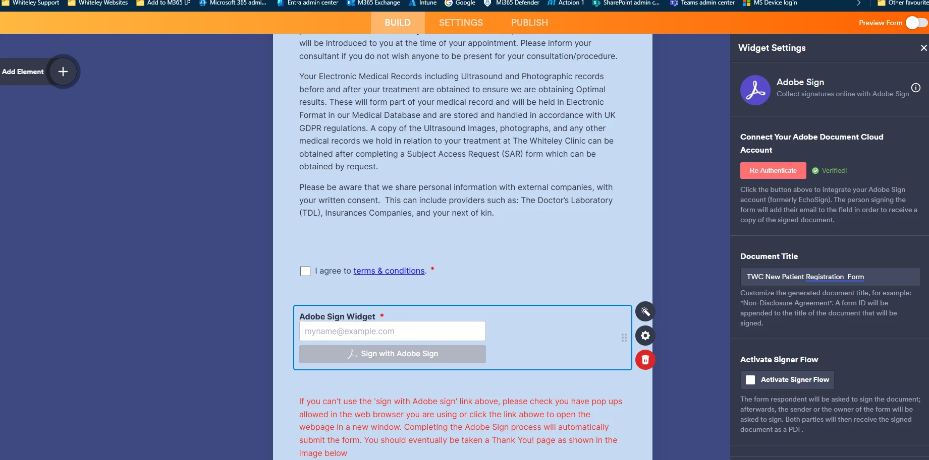 I use Adobe Sign with Jotform to create Digitally Signed Forms for our customers. Up until about 4 or 5 weeks ago this process was working fine for the main form we use for new customers. However the PDF created by the Adobe Sign Widget did not have all the critical data we need on it. The Jotform support team have managed to replicate the problem and confirm there is an issue, I can;t tell if this is an Adobe Issue or a Jotform issue., Since Jotform suopport have not currently resolved this problem and this form is really very important to our businees; therfore I recreted the Jotform from scratch about 3 weeks ago and added the Adobe Sign widget to it and throughly tested my new form and everthing was working as expected . Then a couple of weeks later, the smae thing happened to the Adobe Sign process where nonoe of the critical data was added to the Adobe Sign document. Even though it still possbile to creare a PDF from the data captured by the jotform form, by exporting it from Jotform , however this is sadly not a digiotally signed form, which is the whole reason for using the Adobe Sign widget with Jotform. I hope someone can assist me, with this Issue.