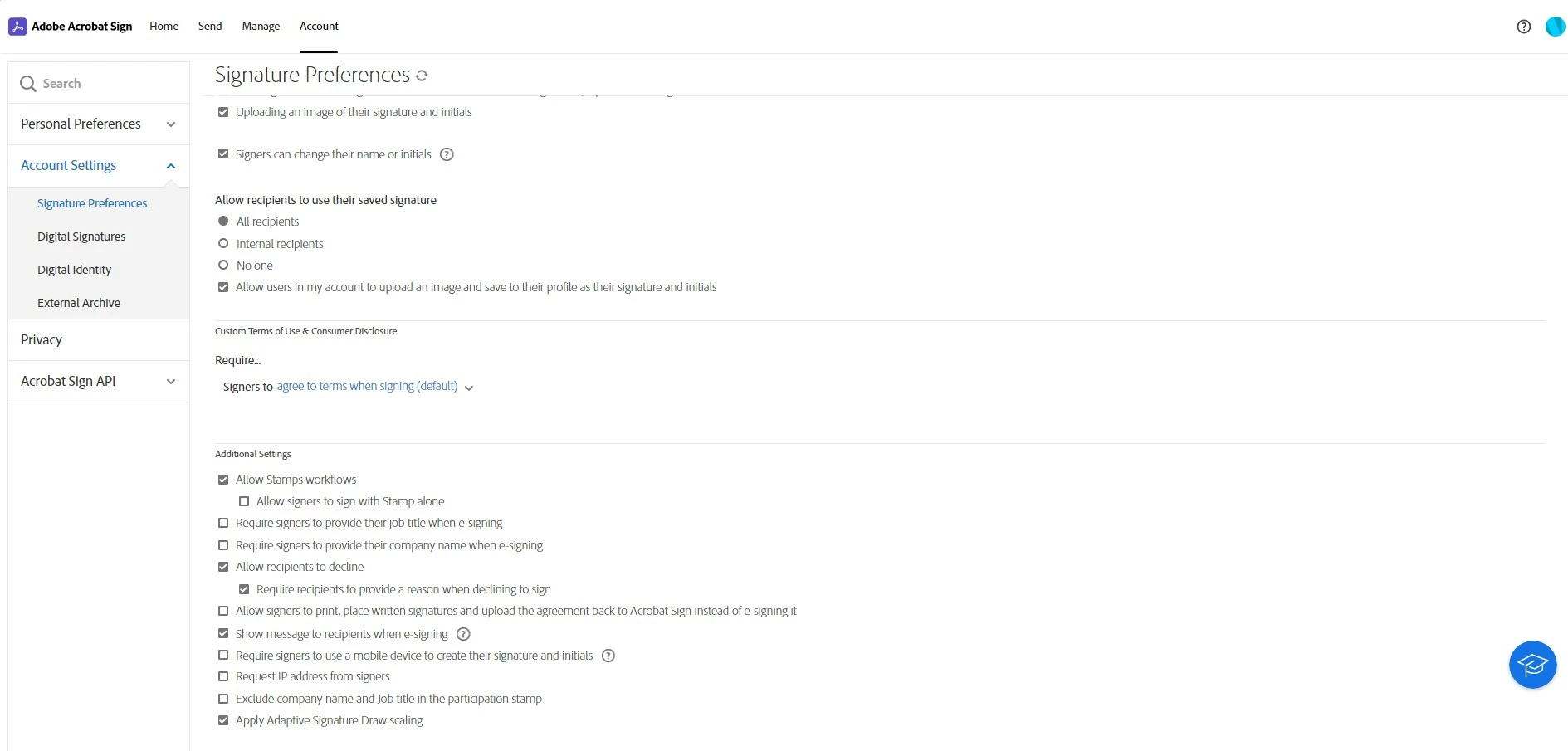 Change your settings in Adobe Sign. You need admin privileges.