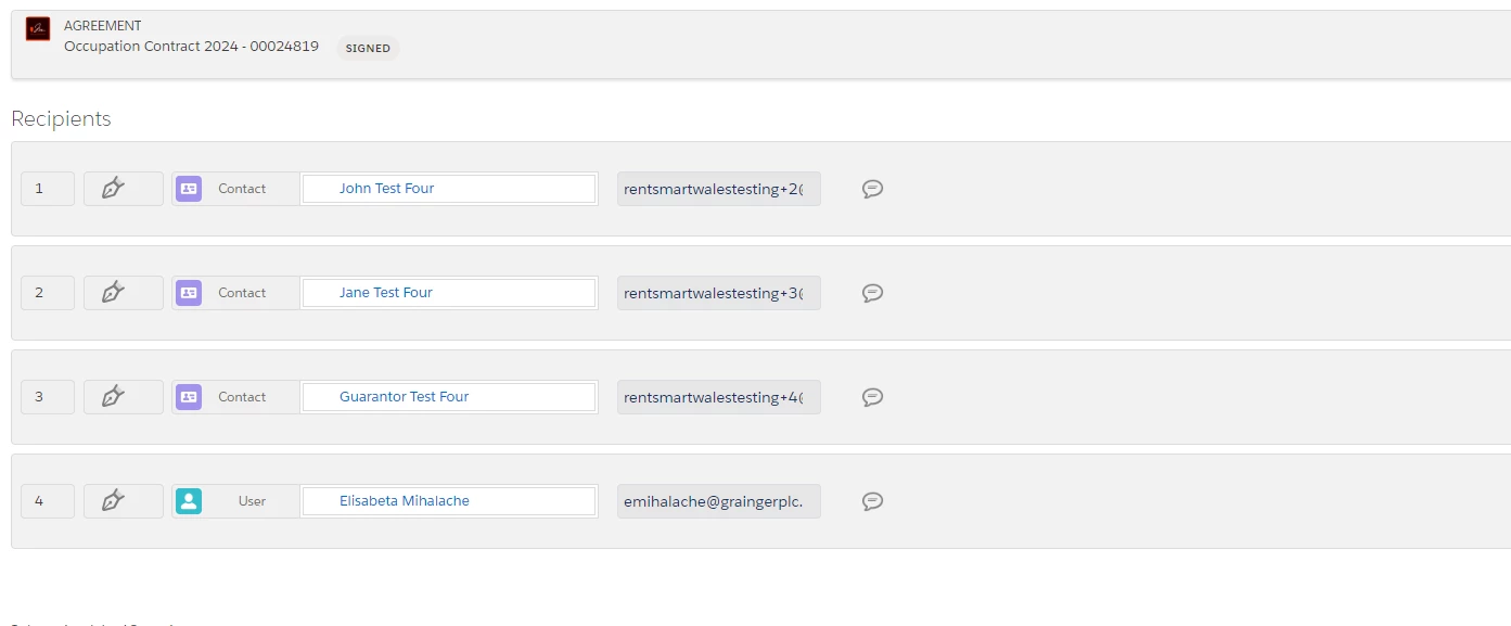 In production 95% we get these below recipients automatically pulled from the opportunity but in the sandbox for all agreements to be sent we have to manually input the receipts. Please let us know if there is anything we need to do to have the same setup as production.