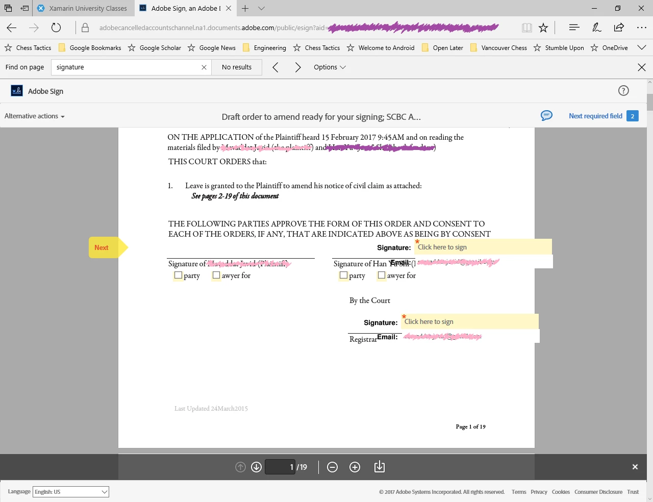 Figure 2: Last signature block in the document prior to its being sent, the document with signature blocks prepared using the Adobe Acrobat Pro "Prepare Form" tool