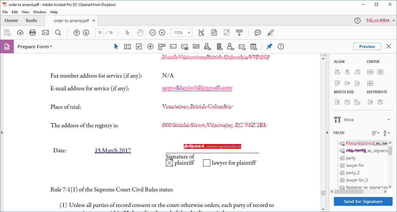 Misplaced signature blocks when sending for signatures using Adobe Sign