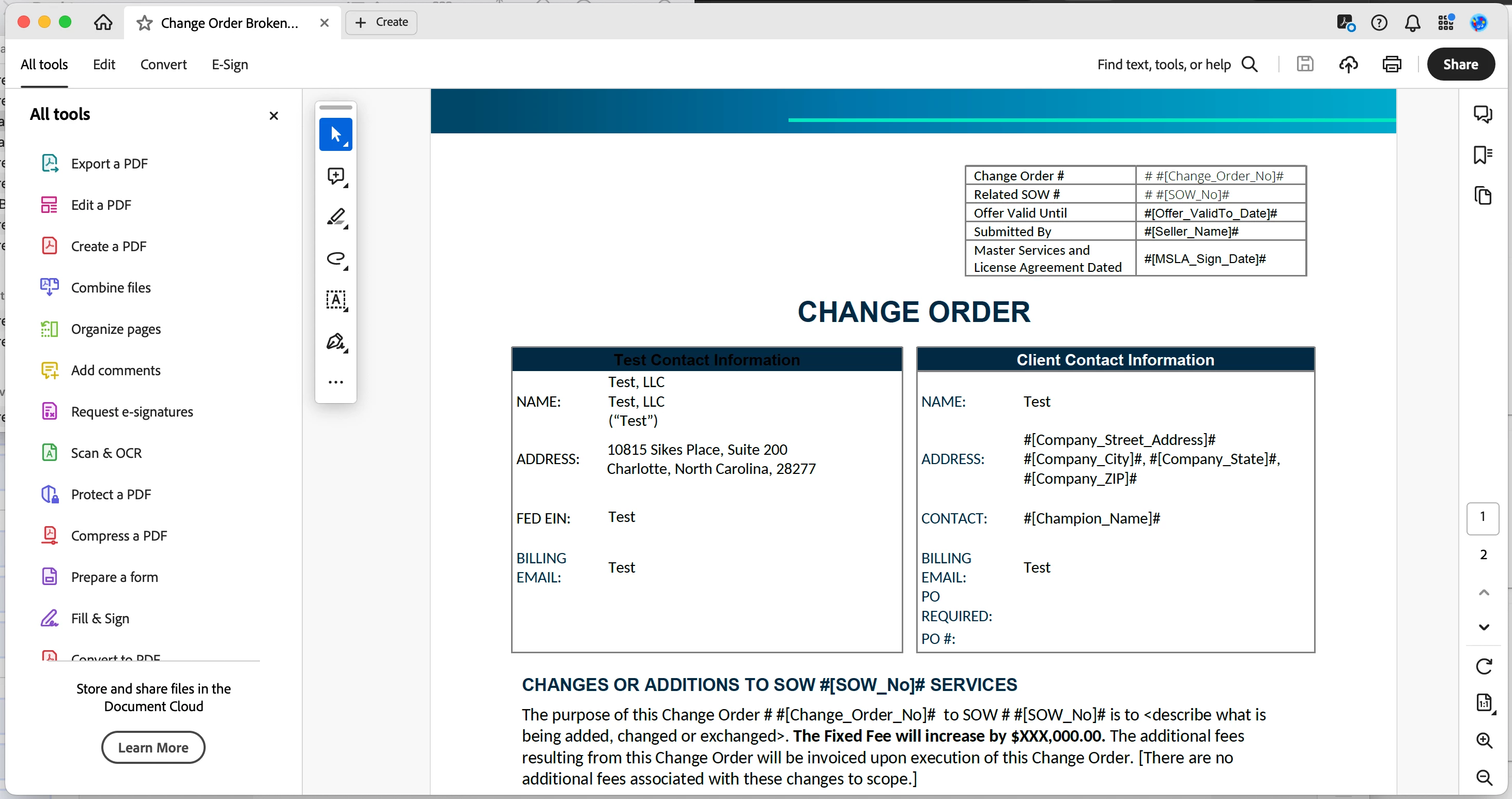 PDF turns blank when sending out for signature