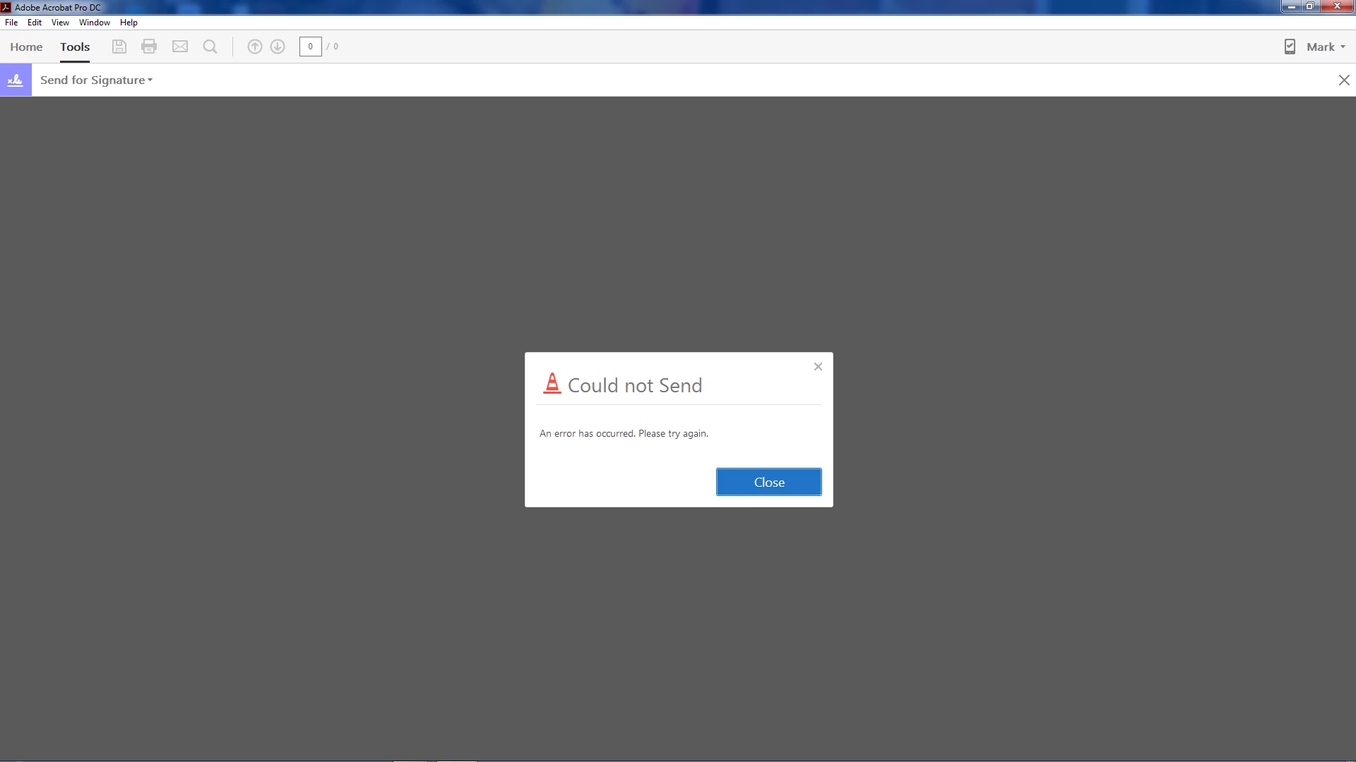 Everything was working fine on ipad and iphone for esign and Pro DC. Then I needed to change my email for the esign to use. So I changed by Adobe User ID to the email I need to use from now on out. Once I have verified the email and logged back in the esign does not work. I even setup the desktop (windows) version and when I do to "Sign and Send" it allows me to choose a file and then once I hit "Ready to send" it shows this error below. Any help would be greatly appreciated.