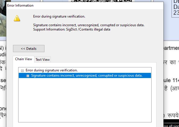 the problem is in the document, not on adobe's end.  you should expand all items to get more detailed info.
