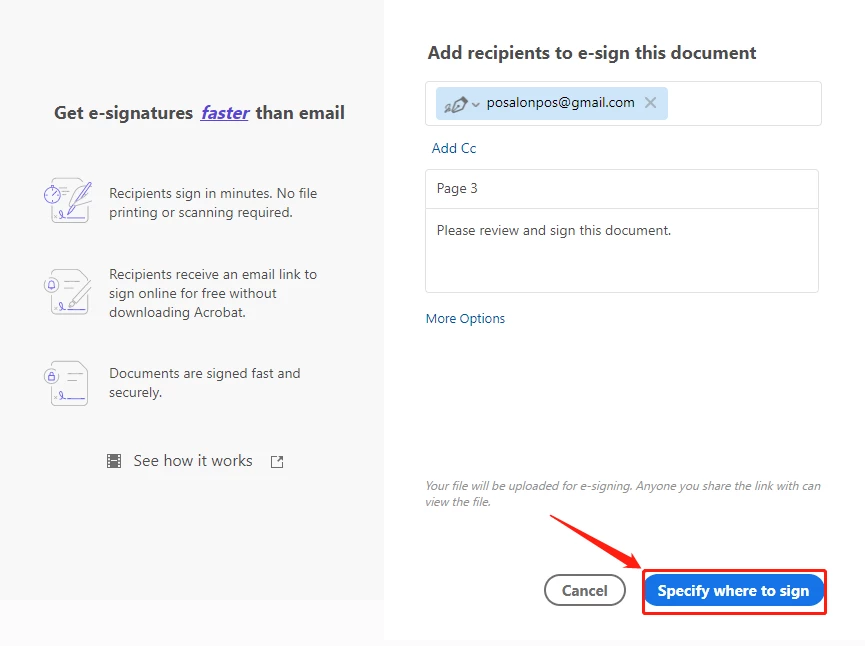 click Specify where to sign button, shows Access Denied, how to access service? please advise
