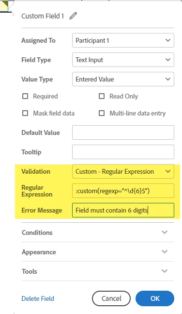 I am putting together a Direct Deposit form for a new hire. I have figured out how to require the signer to enter digits and I put a maximum # of digits allowed. How can I require a minimum amount of digits?