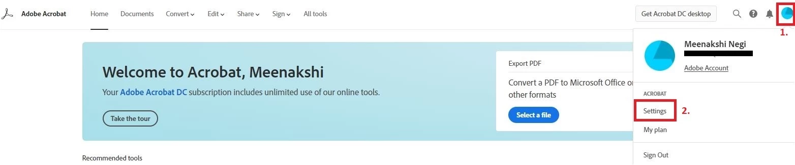2. If you access the Adobe Sign service via Document Cloud account, use the following steps: