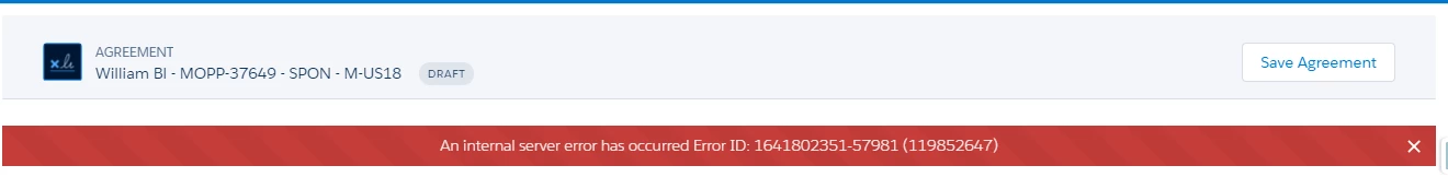 We are getting the following error each time we try to send an Agreement via Adobe Sign from our Salesforce org. I would be most grateful to anyone that has had a similar experience and can share a resolution.