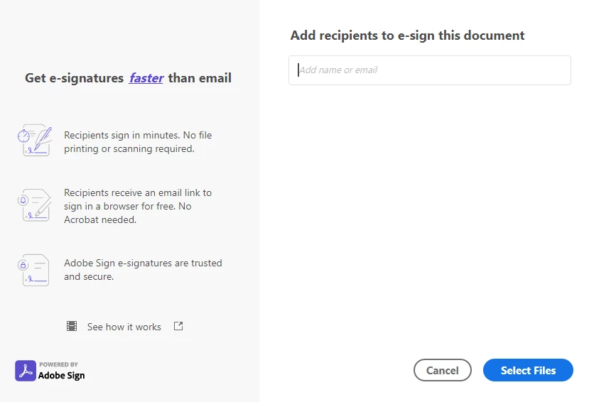 I am writing to know why my account is not working for sending for the signature. It gives me option to select the file and then says that the file is not right. I tried to share the screenshot. It should give me the option of "Specify area.' Thank you
