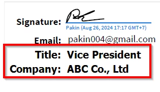 Show Signature, Email, Title, Company on the digital signature when signing through API integration