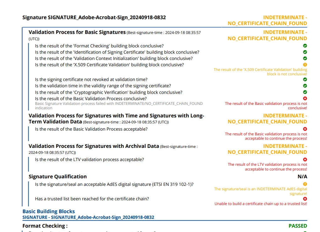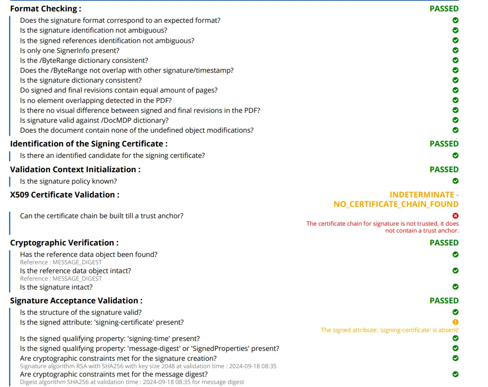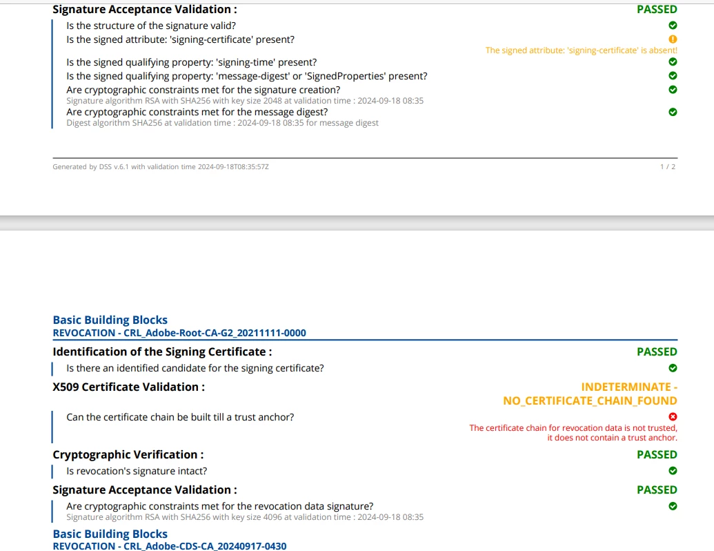 Trying to send signed documents to an EU country but these are being rejected as they do not pass validation check when checked on this site DSS Demonstration WebApp (europa.eu)