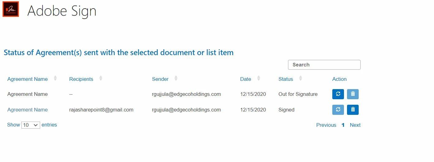 This is regarding the Adobe sign process on files uploaded to SharePoint Online. When a file is sent for Signatures, the user will be providing his/her signature on the file. But before sending the signature the "Agreement Status" on the file would be "Out for Signature". And after the file is being signed, the signed file is supposed to be added into the "Signed Agreements" folder, which is not happening in our case.