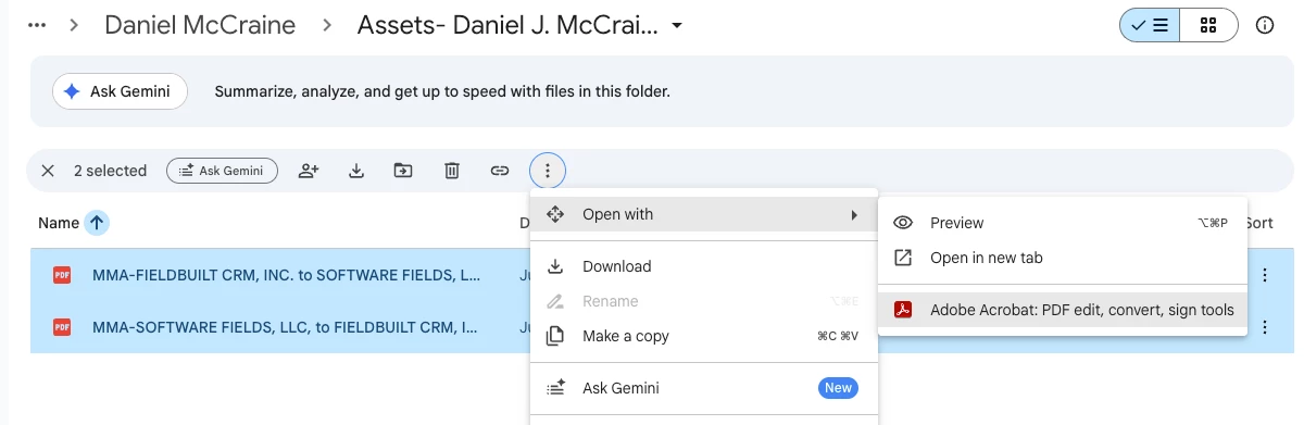 I send several documents for client signature at a time. The documents all live in a client folder in my Google Drive.