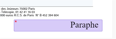 When previewing the document before validation: (paraphe is initials in French)