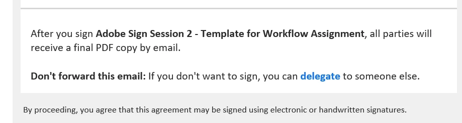 If the Adobe Sign signature request email is forwarded (not delegated) to a third party, the third party can sign the document with the forwarder's signature.An example: