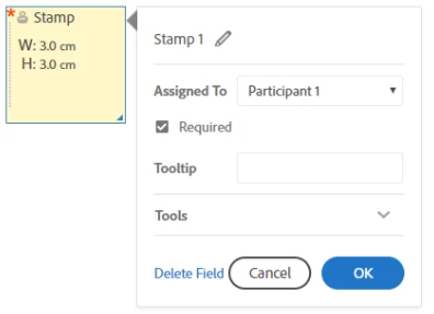 Stamp: Stamp fields can serve double duty as either a standalone signature, or in support of another signature fields. For example, you may need to place a personal signature, as well as a corporate seal or Hanko stamp.