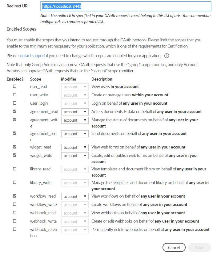 -I created an Adobe Sign API application as follows: