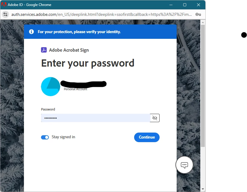 When I go to the link I get this message I have to sign in for my identity.