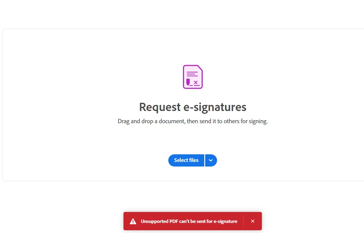 Unable to send for signature files pre-signed with QES
