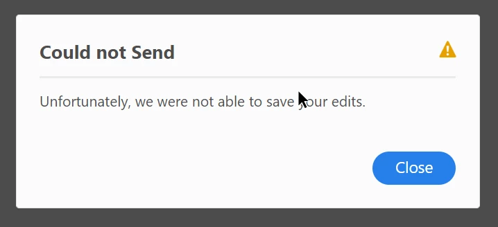 We consistently get a "Unfortunately, we were not able to save your edits" error when sending agreement for signature via Adobe Sign in Acrobat Pro via the 'Request E-Signatures' button.  Other documents work fine, but this particular PDF is giving us issues, but we can't figure out why.