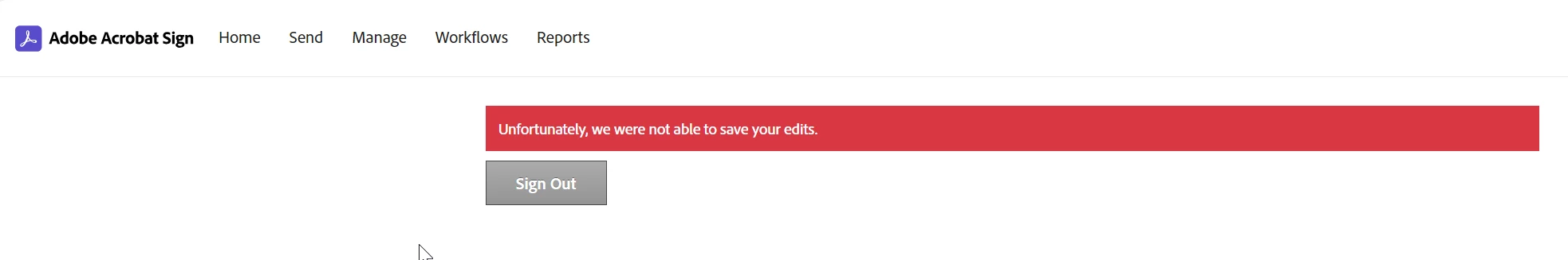 "Unfortunately, we were not able to save your edits" error when sending agreement for signature