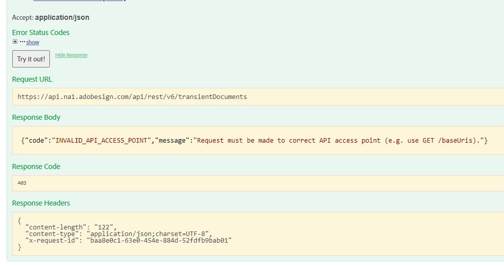 Upload a Document using Adobe Sign API - getting response with "INVALID_API_ACCESS_POINT"