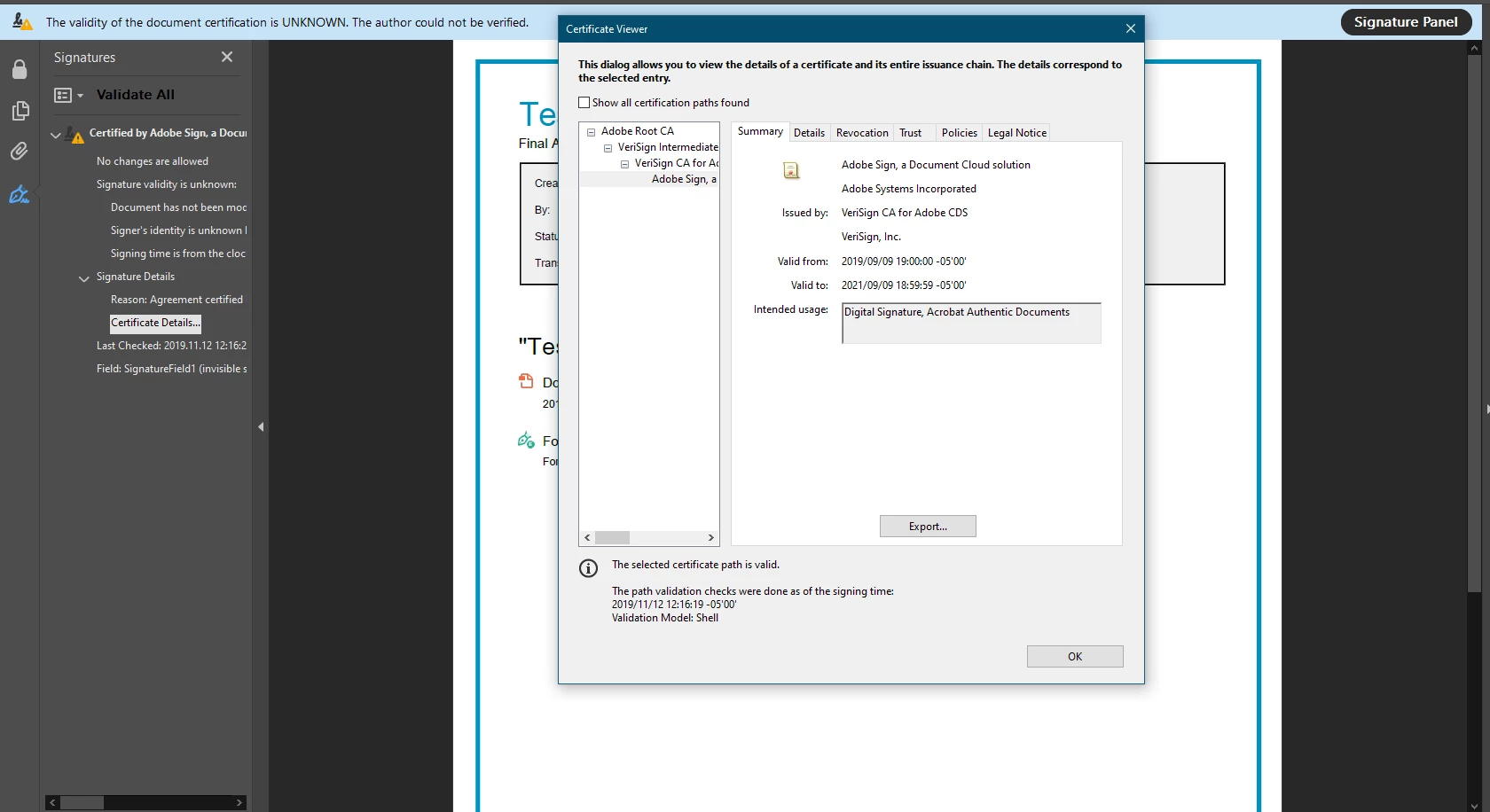 [Validation] Adobe Sign Documents Untrusted