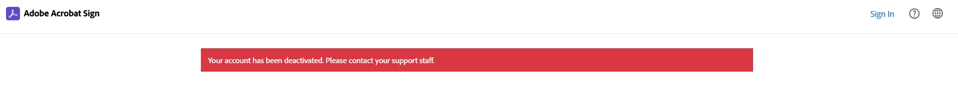 Your account has been deactivated. Please contact your support staff.