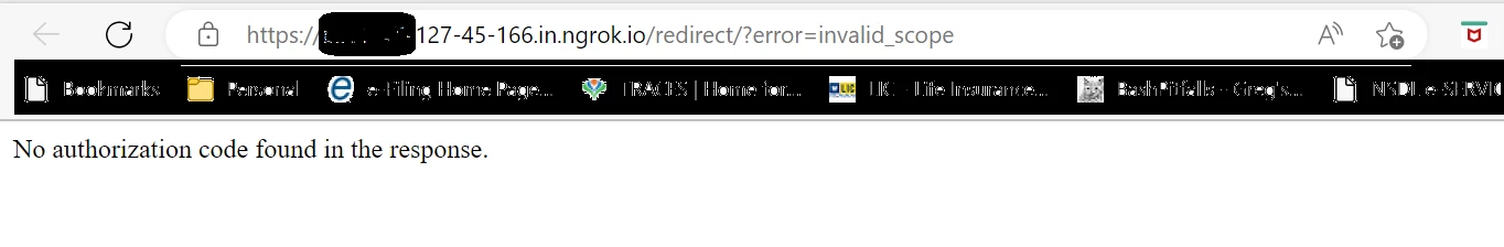 I can see this error URL in the browser when I hit the authorization URL to provide consent in the browser. (Note* The https URL is not exactly the same, I have changed the host and other details)