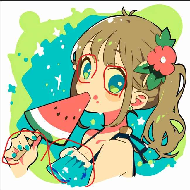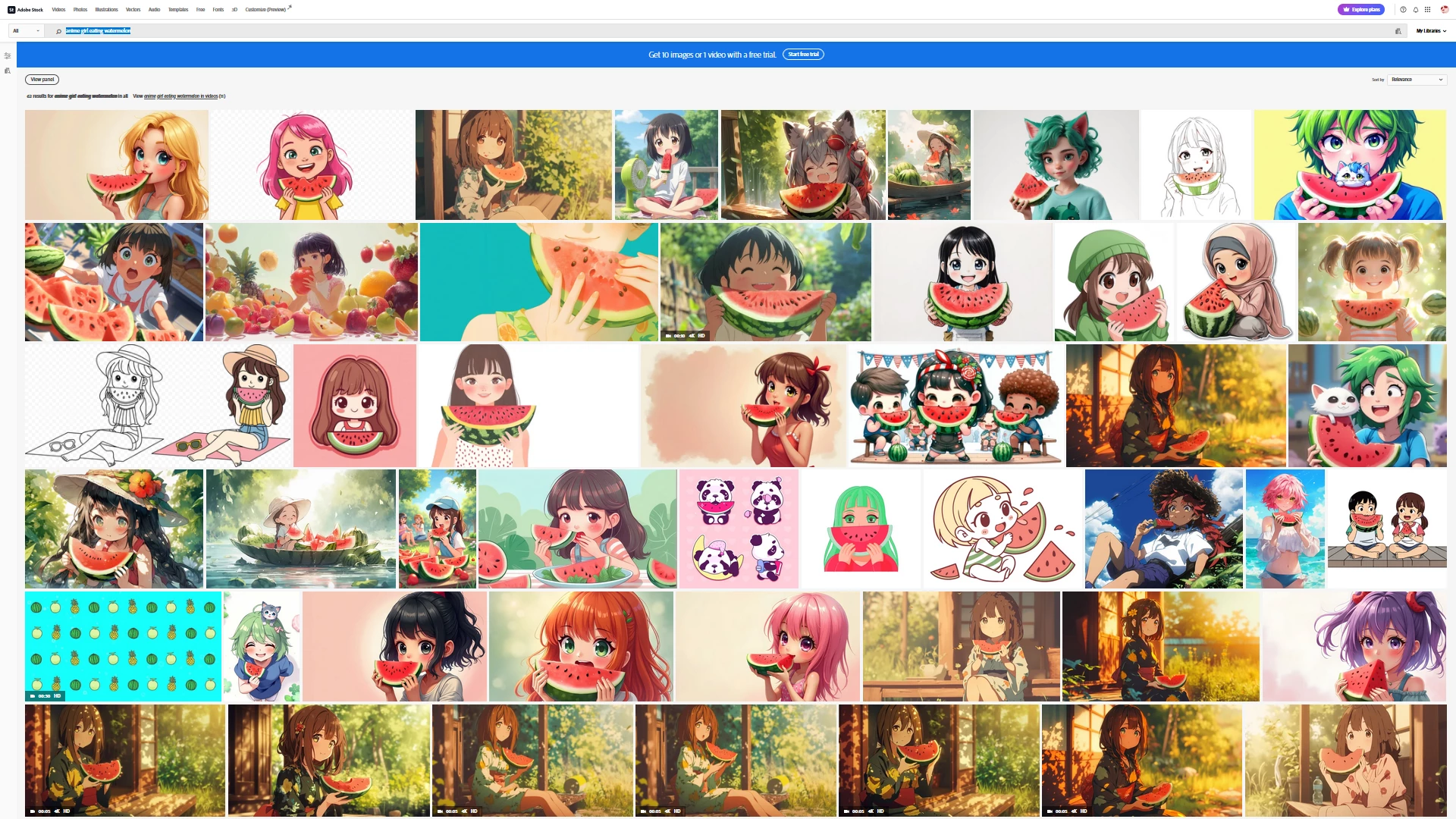 Both of these images were rejected as “similar content.” I do think the two images resemble each other, but when I dropped the lower image into Adobe’s search, I could not find any similar images. At the very least, I did not find any illustration of a girl eating a triangular slice of watermelon with one hand. Also, among the images I have already submitted, there are no illustrations of a girl eating watermelon.